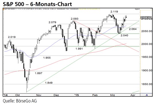 Rückblick: Der S&P 500 Index stieg in den letzten Tagen nach der erfolgreichen Verteidigung der Unterstützung bei 2.040 Punkten in Richtung des Allzeithochs bei 2.119 Punkten an.