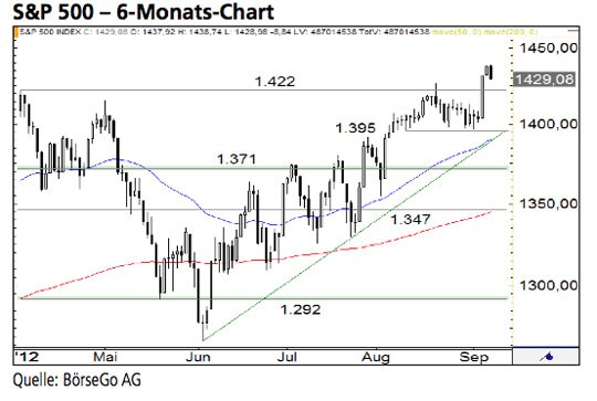 Rückblick: Der S&P 500 Index befindet sich seit Juni diesen Jahres in einem steilen Aufwärtstrend, der ihn bis Mitte August auf ein Rallyhoch bei 1.426 Punkten...