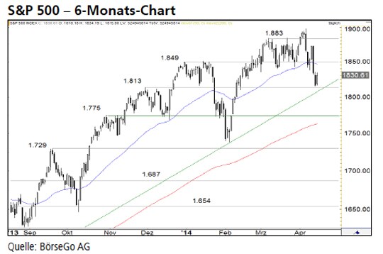 Rückblick: Noch Anfang April setzte sich beim S&P 500 Index die übergeordnete Aufwärtstendenz fort und die Bullen schraubten das Allzeithoch vorübergehend auf 1.897 Punkte.