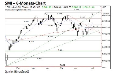 Nachdem die Bullen beim SMI Index die wichtige Unterstützung bei 8.763 Punkten trotz mehrerer Angriffe der Verkäufer erfolgreich verteidigten, setzte Anfang Juli eine massive Kaufwelle ein.