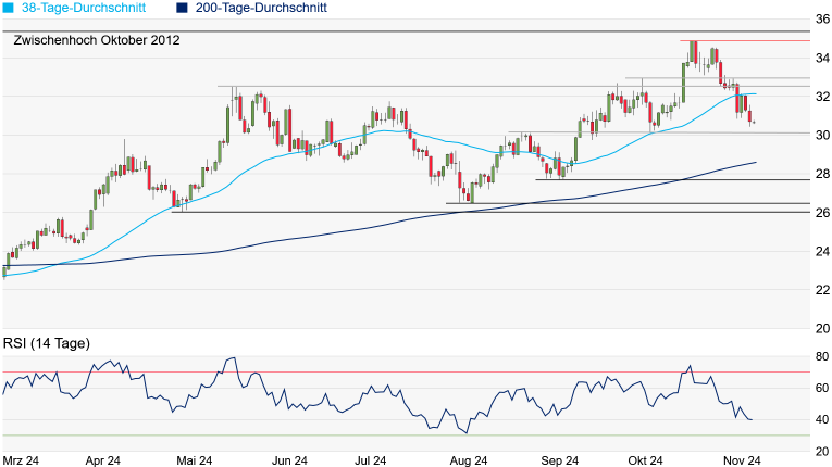 bereits Halt. Geht es darunter, könnte der aktuell bei 28,60 Dollar verlaufende 200-Tage-Durchschnitt wieder in den Fokus rücken. Findet der Silberpreis hingegen erneut am August-Hoch Halt, könnte der 38-Tage-Durchschnitt durchaus noch einmal angesteuert werden. Die Stimmung nachhaltig wieder aufhellen, dürfte aber wohl erst die Rückeroberung des Mai-Hoch bei 32,51 Dollar.