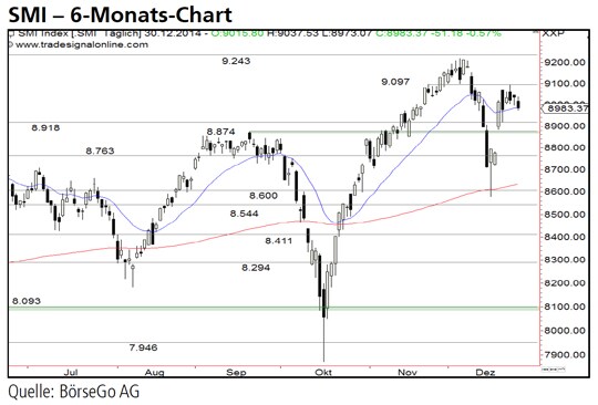 Rückblick: Nach dem Erreichen des langfristigen Widerstands bei 9.243 Punkten kam der SMI Index Anfang Dezember vorübergehend unter Druck, setzte seinen Aufwärtstrend jedoch nach einer Korrektur bis 8.600 Punkte fort.