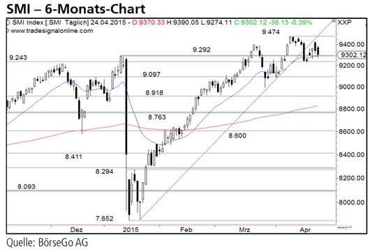 Rückblick: Nachdem der SMI Index Anfang April ein neues Verlaufshoch bei 9.474 Punkten erreicht hatte, setzte eine erste Korrektur ein.