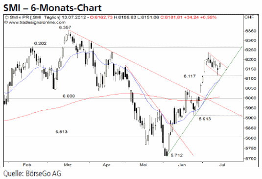 Rückblick: Der SMI befindet sich seit Anfang Juni in einer steilenAufwärtsbewegung, die mit dem Bruch ...