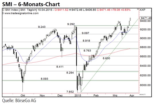 Rückblick: Bis auf 9.474 Punkte war der SMI Index Anfang April im Rahmen seines übergeordneten Aufwärtstrends bereits angestiegen. Doch in der vergangenen Woche meldeten sich erstmals wieder die Bären zu Wort.