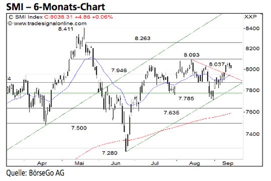 Rückblick: Der SMI Index verteidigte Ende August die Unterstützung bei 7.785 Punkten und stieg anschliessend über den Kreuzwiderstand bei 7.946 Punkten an. Ende der...