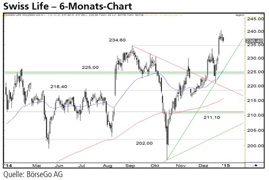 Ausblick: Der Ausbruch Ende Dezember dürfte auch weiterhin seine Wirkung entfalten. Dieses mittelfristige Kaufsignal könnte nach unserer Auffassung den Auftakt für eine mehrwöchige Hausse bilden. Die Long-Szenarien: Nach einem Test der Unterstützung bei 234,60 CHF dürfte sich die laufende Aufwärtsbewegung fortsetzen und den Wert bei einem Anstieg über 240,40 CHF direkt bis 247,00 CHF steigen lassen. Oberhalb dieser Marke würde der langfristige Widerstand bei 254,00 CHF angelaufen. An dieser Stelle könnte es zu einer leichten Korrektur kommen. Bei einem nachhaltigen Ausbruch über diese Kursbarriere könnte sich der Aufwärtstrend der Aktien auf Sicht der kommenden Wochen bereits bis 265,00 CHF fortsetzen. Die Short-Szenarien: In der aktuell stark bullishen Situation, in der sich der Wert nach dem Ausbruch über die 234,60 CHF-Marke befindet, wäre erst ein Rücksetzer unter die Haltemarke bei 225,00 CHF problematisch. In diesem Fall wäre der Kaufimpuls seit Mitte Dezember neutralisiert und gleichzeitig ein kleines Verkaufssignal gebildet. In der Folge könnte es zu einem Ausverkauf bis 218,40 CHF kommen, der sich unterhalb dieser Unterstützung bis an die 211,10 CHF-Marke ausdehnen würde.