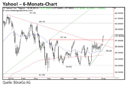 Rückblick: Eine gewaltige mittelfristige Aufwärtsbewegung bei den Aktien von Yahoo! fand im Januar dieses Jahres bei 41,72 USD ihren Höhe- und zugleich Wendepunkt.