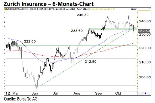 Rückblick: Die Aktien der Zurich Insurance Group (vormals Zurich Financial) durchbrachen im Oktober 2011 einen steilen mittelfristigen Abwärtstrend auf Höhe...