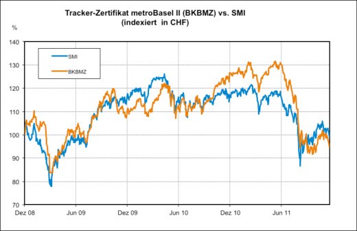 Der metroBasel III Basket legt sein Schwerpunkt auf börsenkotierte Unternehmen am Basler Rheinknie. Es handelt sich bereits um die dritte Auflage dieser erfolgreichen Serie. Das vor wenigen Tagen abgelaufene Vorgänger-Zertifikat metroBasel II entwickelte sich kursmässig nahezu synchron zum schweizerischen Blue Chip Barometer SMI (siehe Grafik). Im Unterschied zum SMI, der die 20 höchstkapitalisierten Unternehmen der Schweiz umfasst, setzen die metroBasel Zertifikate allerdings ausschliesslich auf kleinere und mittelgrosse Unternehmen, die allesamt ihren Firmensitz in der Region Basel haben. Die Schwergewichte Novartis, Roche und Syngenta sind in der Auswahl bewusst ausgeblendet. Die Konzentration auf KMU’s stärkt somit den Bezug zum lokal verankerten Anleger. Aber auch Heimwehbasler dürften daran ihre Freude haben. Small und Mid Caps zeichnen sich zudem wegen ihrer höheren Dynamik in der Regel durch eine überdurchschnittliche Kursentwicklung aus.