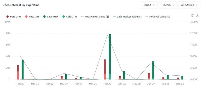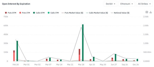 Open interest in Ethereum is similarly bullish, with two of every three options investors on Deribit betting the world's second-largest cryptocurrency will rise.