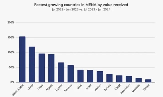 Figure 1: Fastest growing crypto economies in Middle East and North Africa (MENA)
