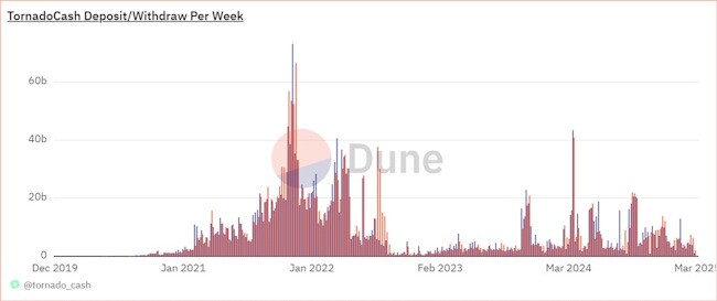 Figure 1: Tornado Cash Deposits and Withdrawals per week