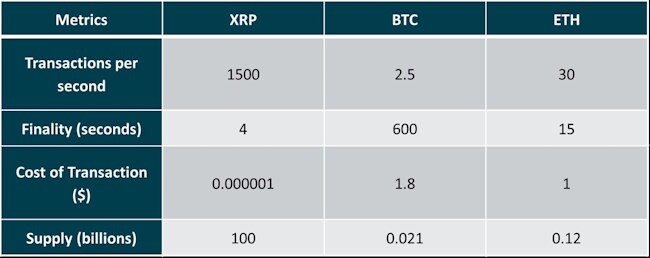 XRP's technical architecture sets it apart from its primary competitors. While Bitcoin and Ethereum rely on PoW and PoS-based consensus mechanisms, XRP employs the Ripple Protocol Consensus Algorithm, enabling faster and more cost-effective transactions.