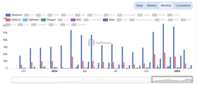 Figure 2: Trading Volume on Uniswap (dominated by Ethereum)