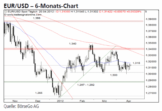 Rückblick: Übergeordnet befindet sich der Euro gegenüber dem US-Dollar in einem Abwärtstrend, der im Januar an der Unterstützung bei 1,265 USD vorerst gestoppt wurde.