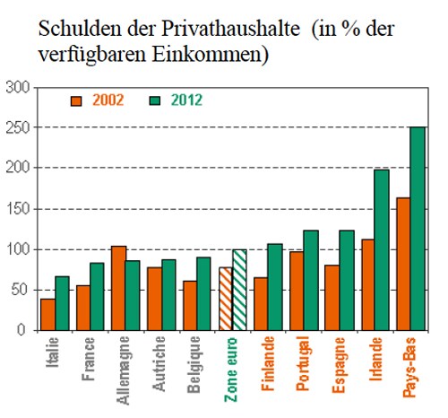 Das gleiche gilt für die Löhne. Allmählich gleicht sich die preisliche Wettbeerbsfähigkeit der Euroraumländer wieder an, das hat allerdings stagnierender oder fallender Löhne in den Peripherieländern zur Folge: In Spanien sind die Löhne seit Ende 2011 weitgehend gleichgeblieben, aber in Portugal fallen sie seit 2011 und in Griechenland seit 2010. Wenn sich dies fortsetzte, wäre es tatsächlich ein Grund zur Sorge. In Spanien, Portugal und Irland geht diese Korrektur allmählich zu Ende, in Frankreich und Italien sieht es hingegen ganz anders aus. In beiden Ländern sind die Privathaushalte längst nicht so hoch verschuldet, und das Risiko einer durch Schulden verursachten Deflation ist entsprechend geringer.