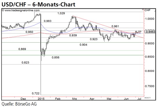 Noch Anfang Januar dieses Jahres war das Devisenpaar USD/CHF auf ein neues Verlaufshoch bei 1,029 CHF angestiegen, ehe der Entscheid der SNB, die Untergrenze bei EUR/CHF aufzuheben, auch bei diesem Paar für einen massiven Einbruch sorgte.