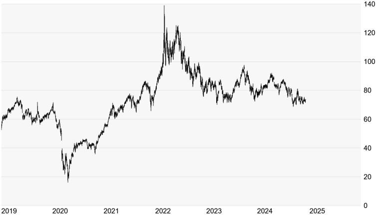 leicht entspannt, ist aber noch lange nicht ausgestanden. Wird der Unterstützungsbereich bei 71,86/71,20 Dollar doch noch unterschritten, könnten das Korrekturtief vom März 2023 bei 70,06 Dollar oder das Jahrestief vom September bei 68,29 Dollar noch einmal ein Thema werden.