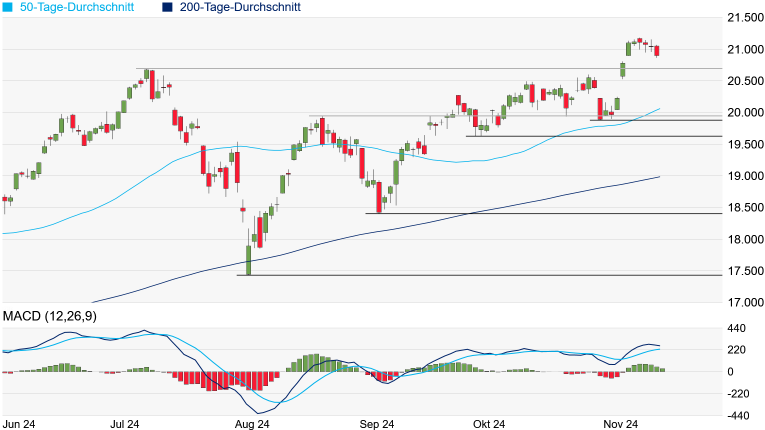 einem Rücksetzer auf 20.249 Punkte geschlossen würde. Mit dem aktuell bei 20.063 Punkten verlaufenden 50-Tage-Durchschnitt würde sich eine weitere wichtige Unterstützung in den Weg stellen, ehe die psychologisch so bedeutende 20.000-Punkte-Marke wieder ein Thema werden könnte.