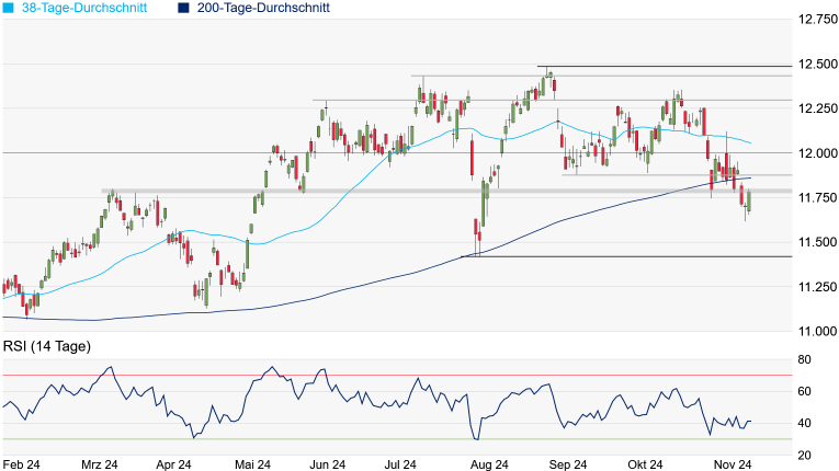 Rücksetzer auf das Korrekturtief vom August bei 11.417 Punkten gerechnet werden. Kann der SMI hingegen an die gestrige Vorstellung anknüpfen und den Widerstandsbereich überqueren, würden sich die aktuell bei 11.860 Punkten verlaufende 200-Tage-Linie und das September-Tief bei 11.878 Punkten in den Weg stellen, ehe die 12.000-Punkte-Marke wieder angesteuert werden könnte.