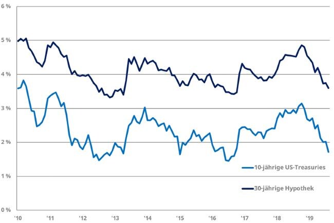 Rendite zehnjähriger US-Treasuries und 30-Jahres-Hypothekenzinsen