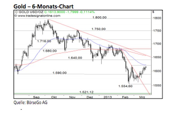 Rückblick: Mit dem Bruch der wichtigen Unterstützung bei 1.640,00 USD setzte der Goldpreis Anfang Februarseine übergeordnete Abwärtsbewegung fort und fiel in der Spitze bis 1.554,60 USD zurück.