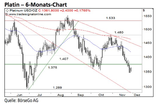 Rückblick: Ausgehend von der langfristig entscheidenden Unterstützung bei 1.289,00 USD stieg der Platinkurs seit Ende Juni bis an den Widerstand bei 1.533,00 USD. Dieser konnte...
