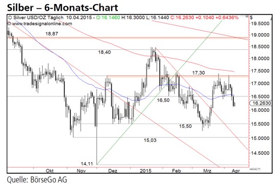 Rückblick: Nach dem vorläufigen Ende eines übergeordneten Ausverkaufs erholte sich Silber ab Dezember 2014 und stieg in der Spitze bis an den Widerstand bei 18,40 USD.